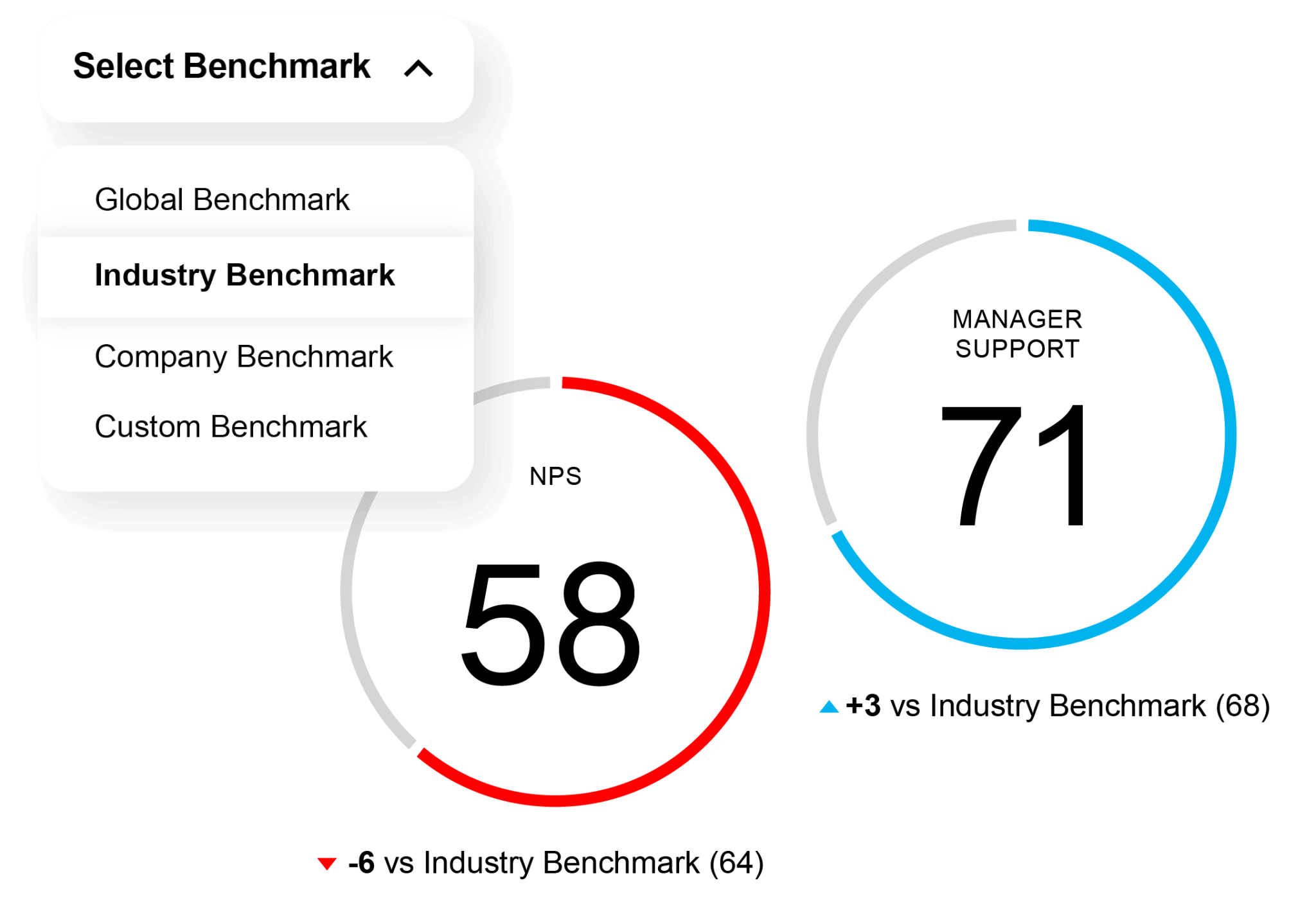 You’ll see how all your XM programs stack up against the industry, your competition, or even past company performance. And with easy to create custom benchmarks, you can set company or team-specific goals and make sure everyone stays on track.