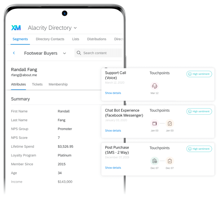 Get to know every stakeholder so you can deliver hyper-personalized experiences. When someone says something about your company you can capture it and store it in the Experience Management Platform™. Over time, you’ll build up detailed profiles of your customers, employees, and any other stakeholder to know exactly what they like, need, and how every interaction with your company made them feel.